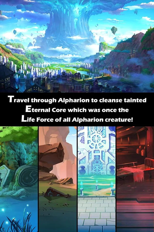 Perjalanan melalui tanah Alpharion untuk membentuk Aliansi terbesar untuk menyelamatkan dunia saat misi untuk mengambil sumber dari Life, Eternal Inti, berlari kami tangan dengan Core terkontaminasi yang hancur dan tersebar di seluruh tanah! Disesuaikan tim Anda dan mengumpulkan lebih dari 50 pahlawan Anda menghadapi musuh yang dimiliki oleh Core tercemar dalam aksi petualangan RPG!